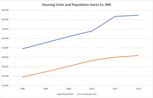 Housing professionals define affordability as a household paying less than 30% of their gross income on housing. This is true whether you make $10,000 a year, or $100,000 a year. Using this definition, its well understood that housing affordability is a longstanding issue in the Greater Santa Fe area. As such, local governments have had programs to support affordability going back to the early 1990’s. At the core of Santa Fe’s, and indeed housing issues nationally, are two distinct issues: